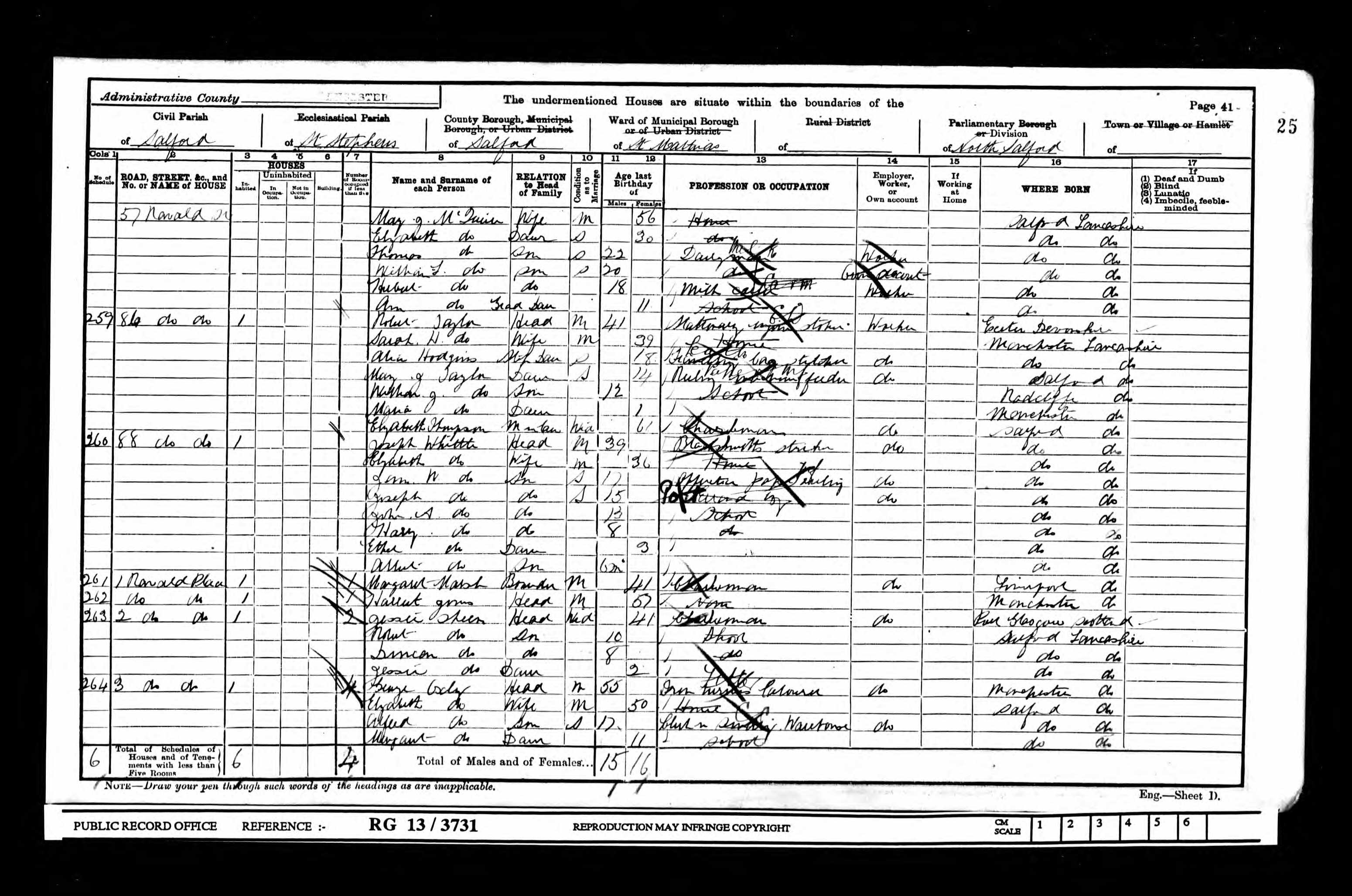 | 1901 | 77 Revald Street, Salford | Thomas | Head | 58 | Dairyman | |