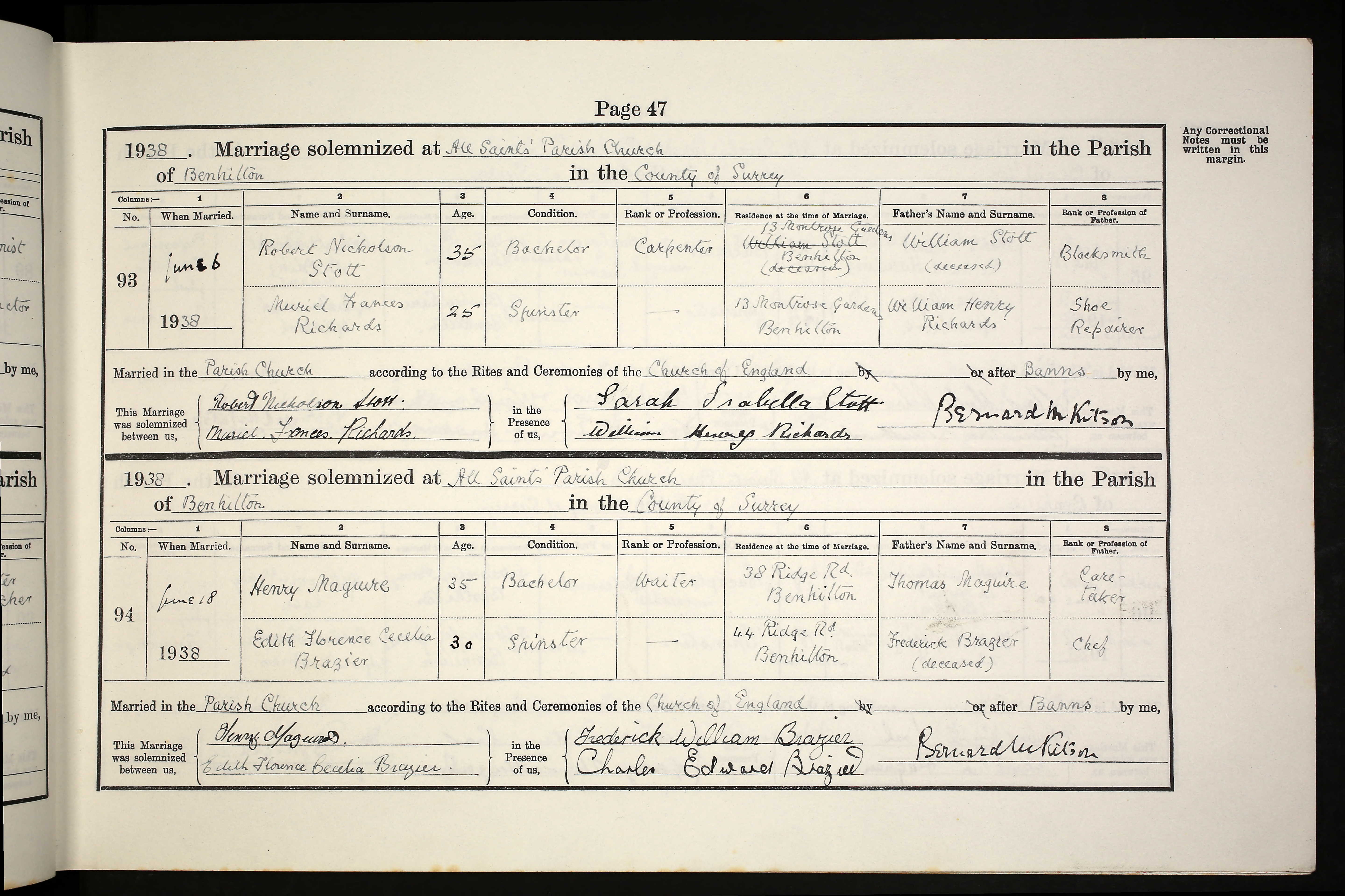 Edith Florence Cecelia Brazier: Frederick Brazier Mother: Edith C C Marshall