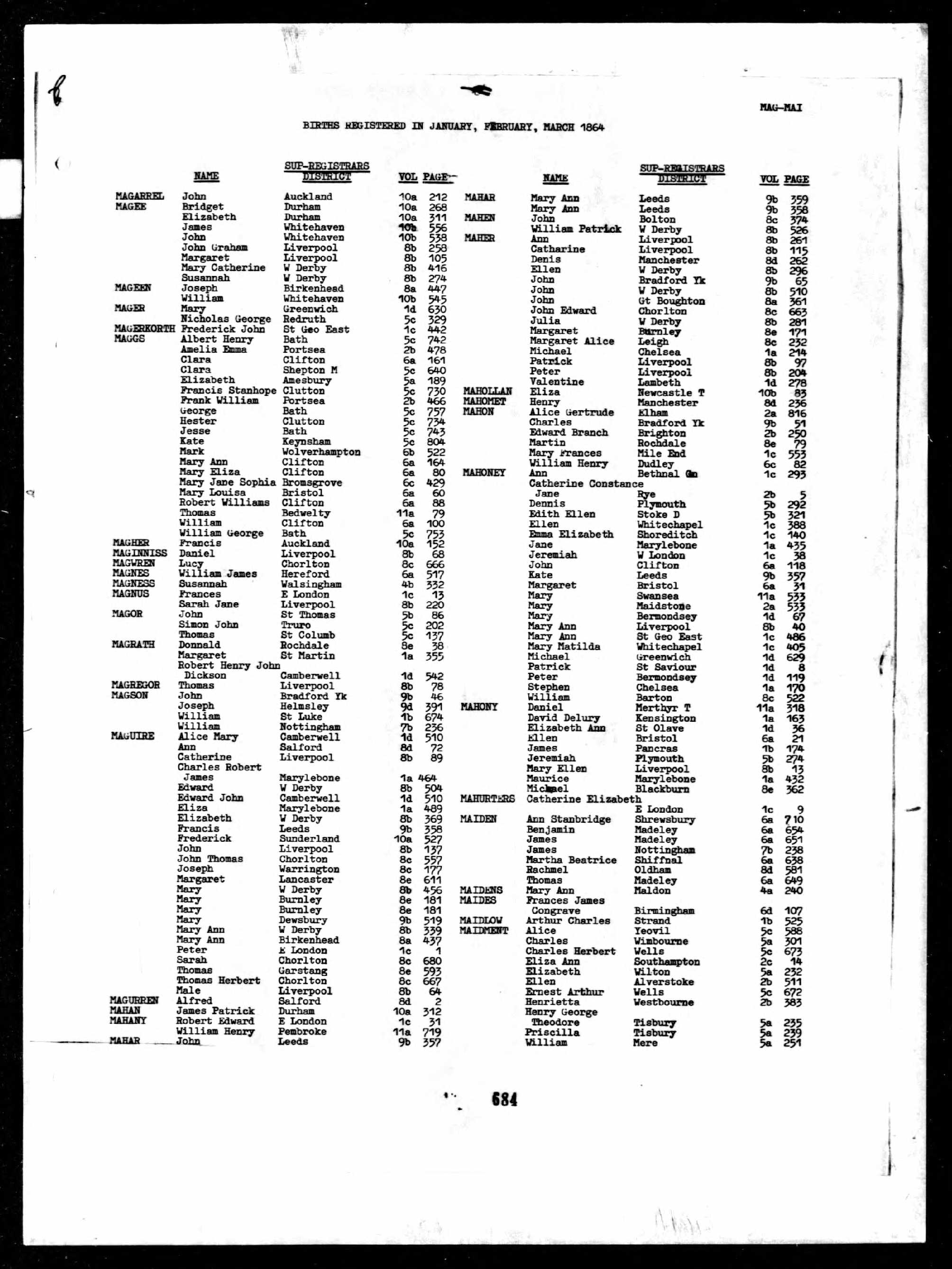 | Ann Maguire | 1864 | Salford | x | 1918 | Lancaster | yes |