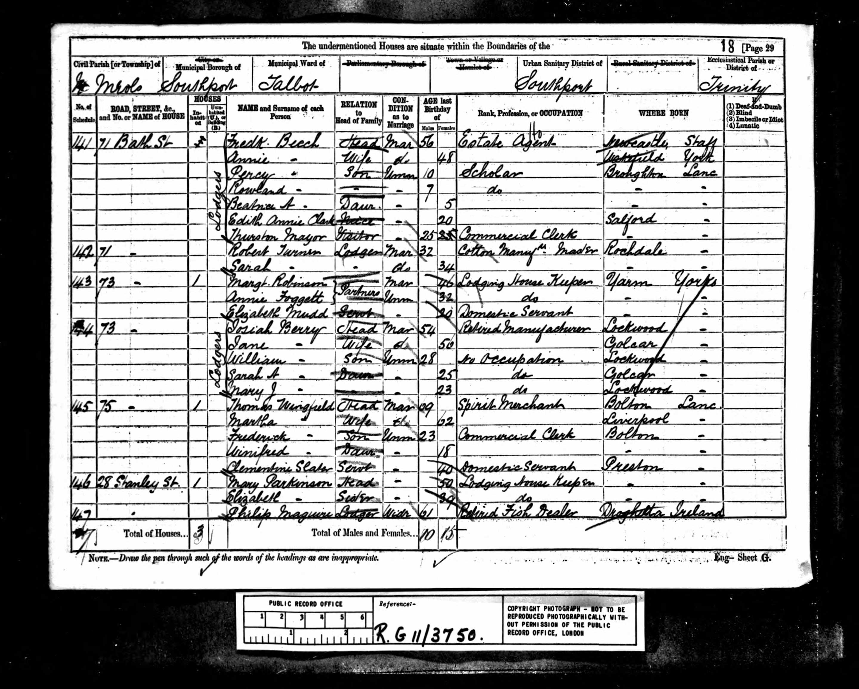 | 1881 | 28, Stanley Street, Ormskirk | Mary Parkinson | Head | 50 | Lodging House Keeper | |
