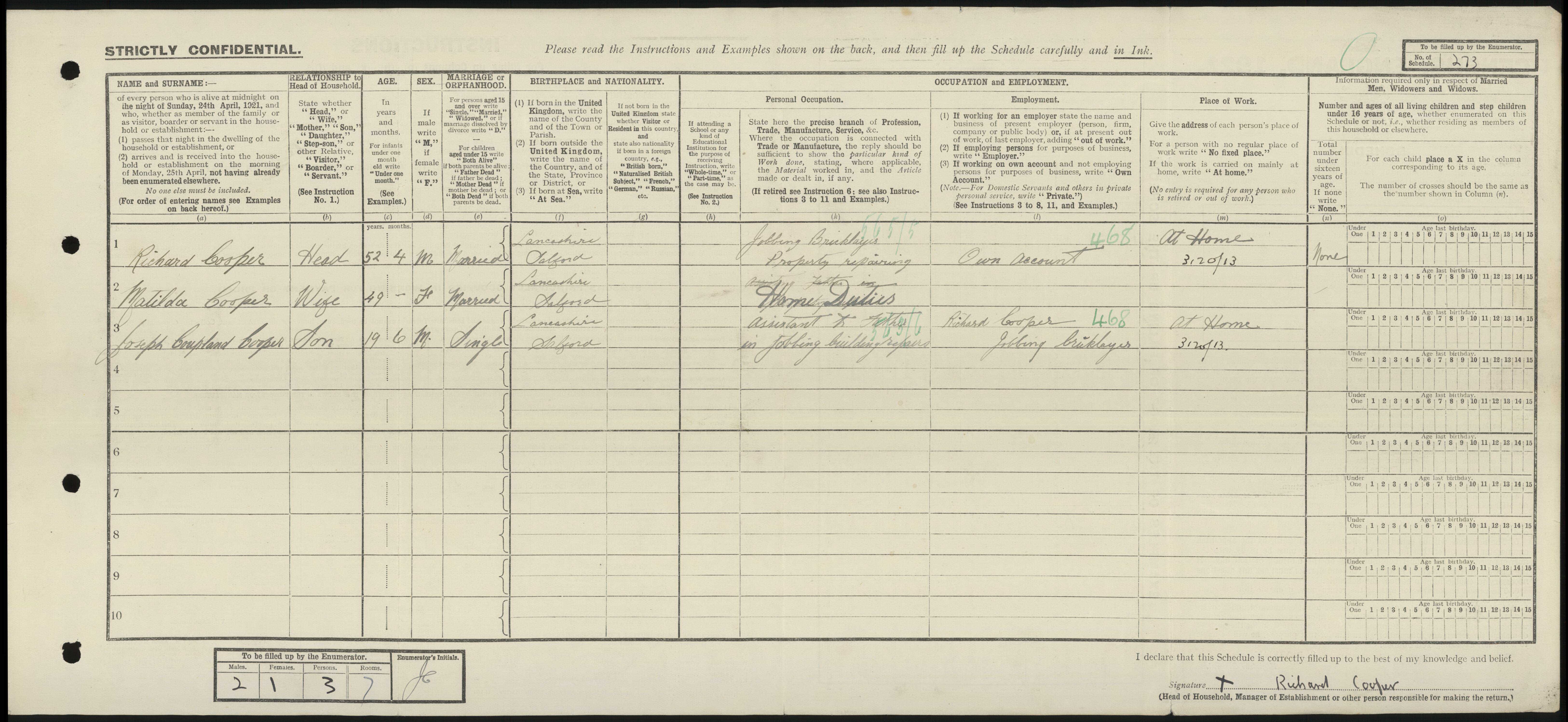 | Matilda Cooper | Wife | 49 | Unpaid Domestic Duties | |||