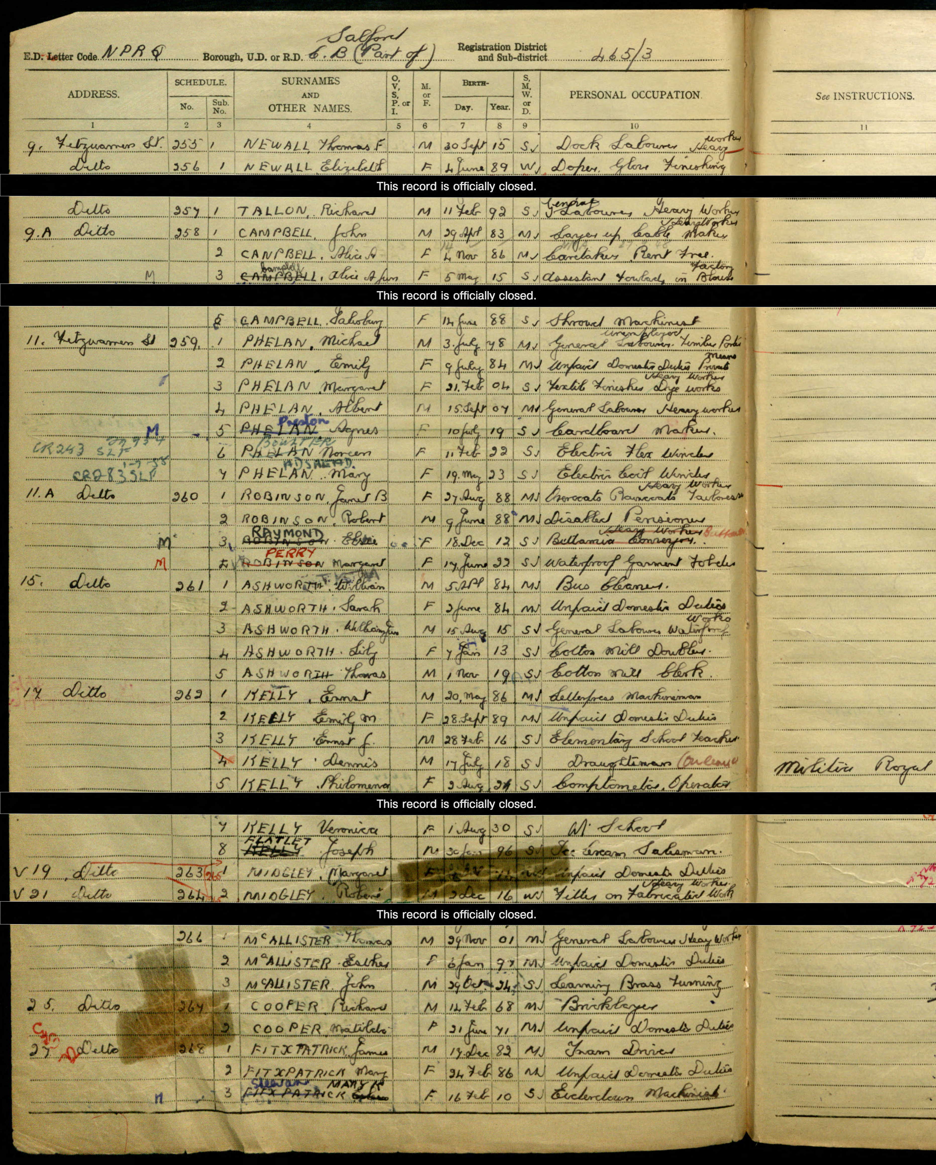 | 1939 | 25 Fitzwarren St | Richard Cooper | Head | 68 | Bricklayer | |