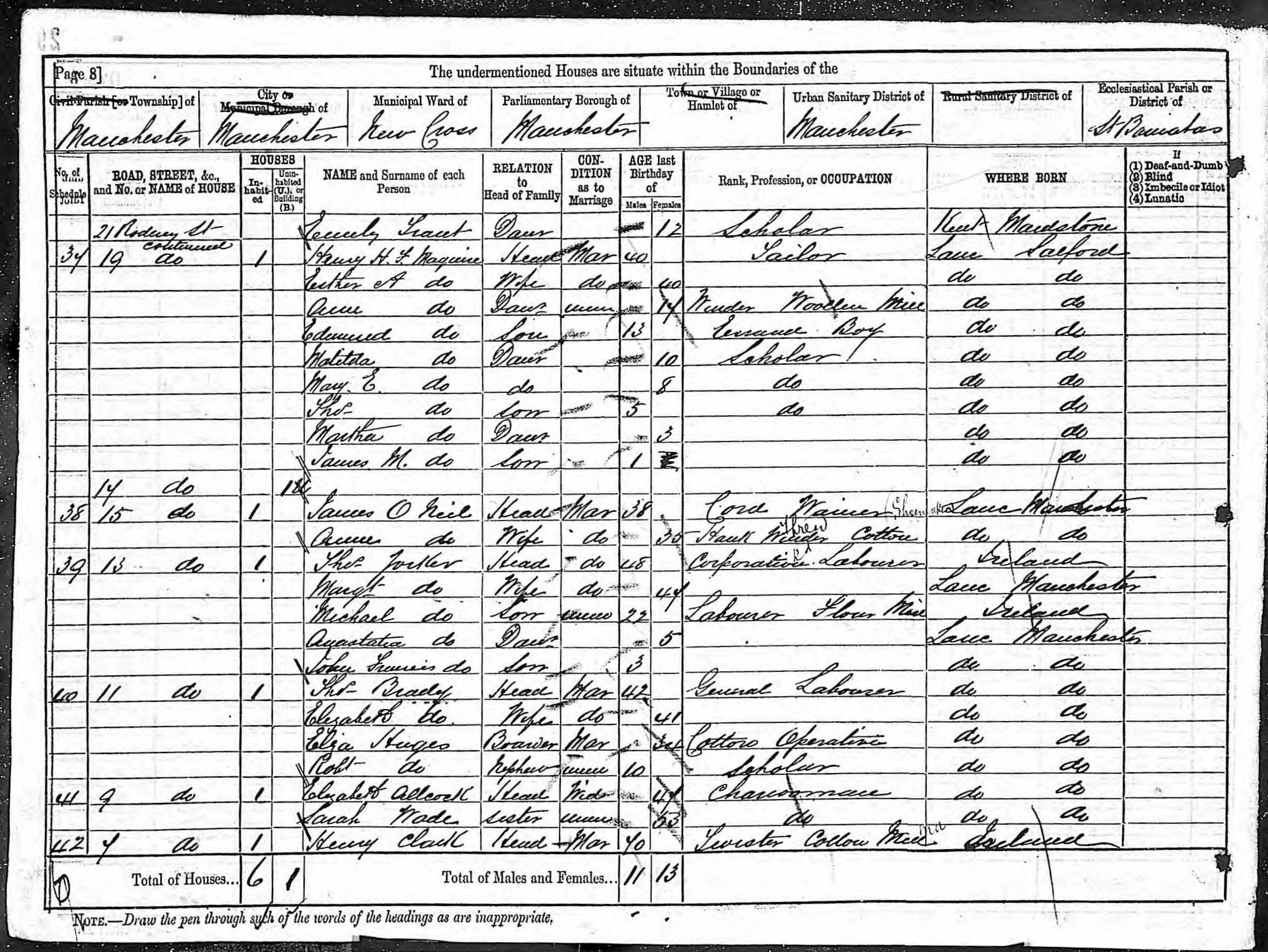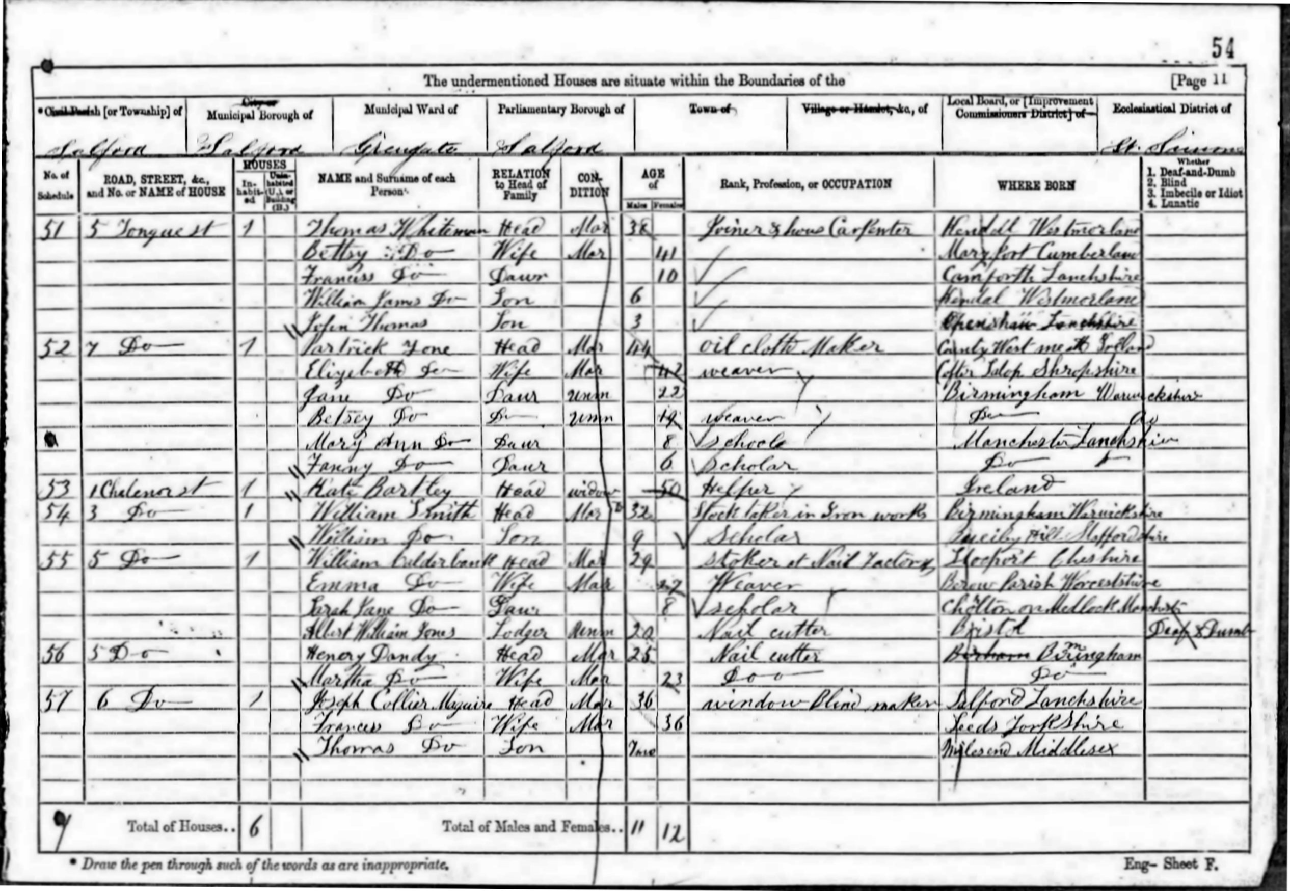 | MAGUIRE | Joseph Collier | Francis Moody | 1836 | x | Venetian Blind Maker | x | 1836 | x | 1869 | x | 1851 | 1861 | 1871 | 1881 | 1991 | 1901 | |||