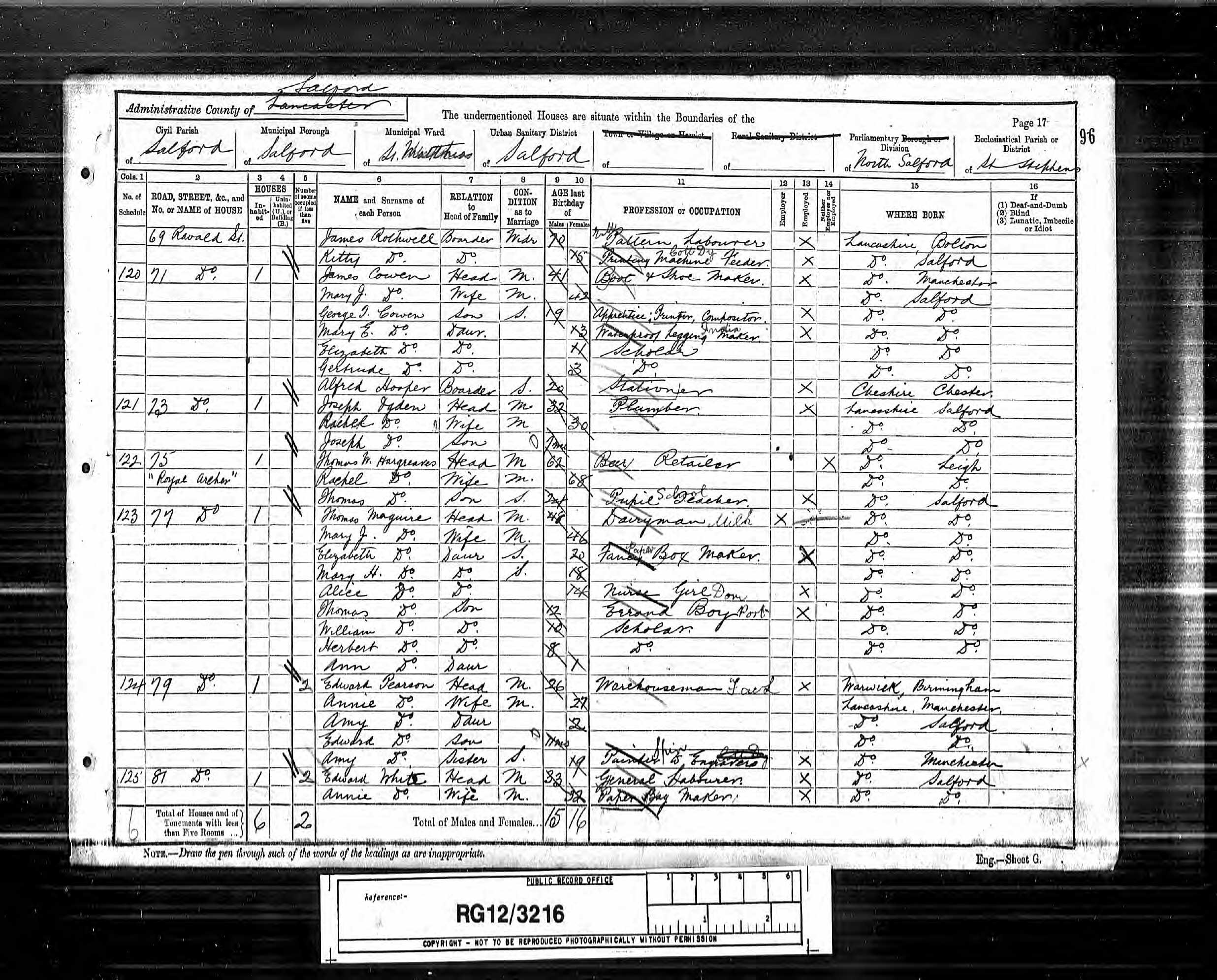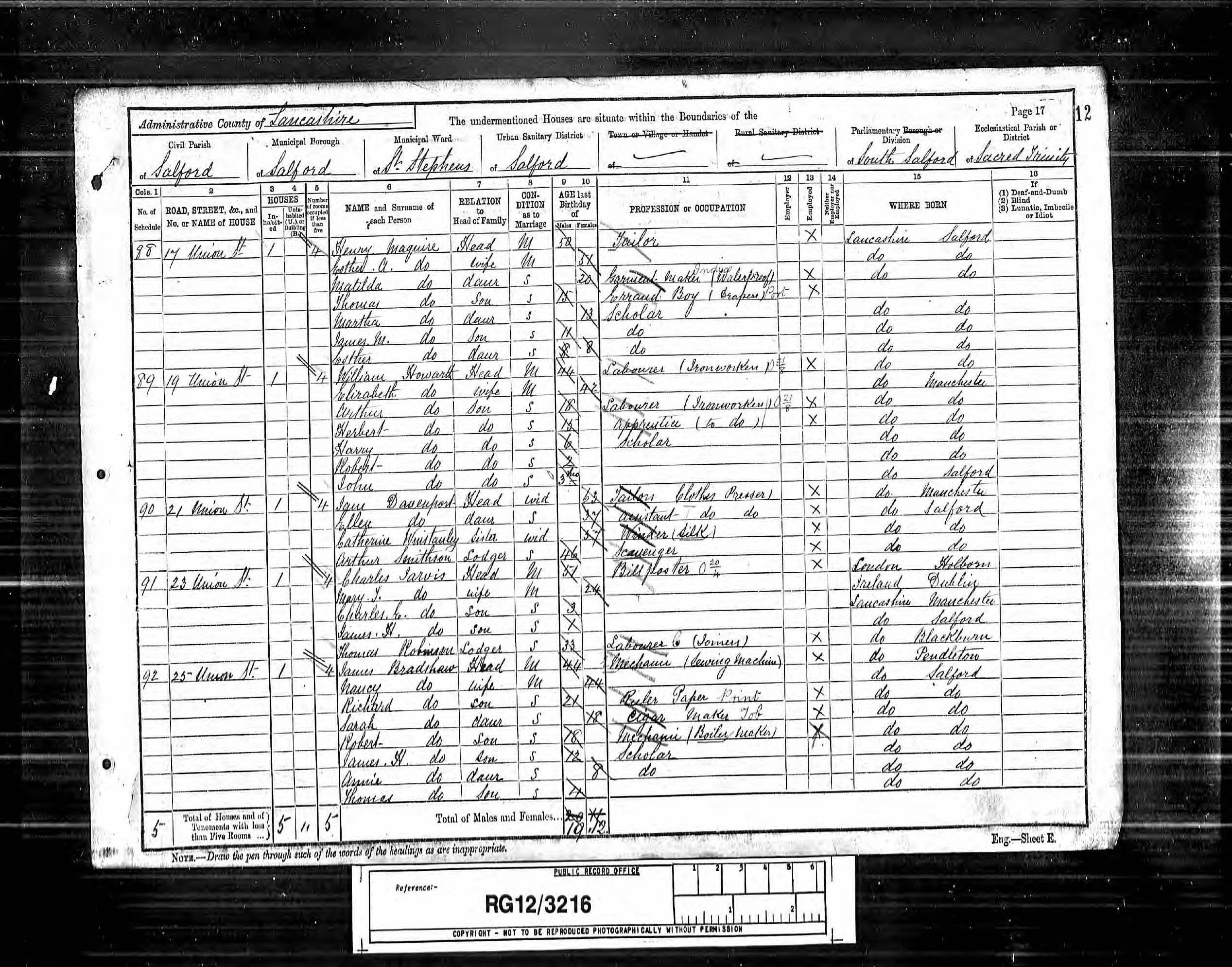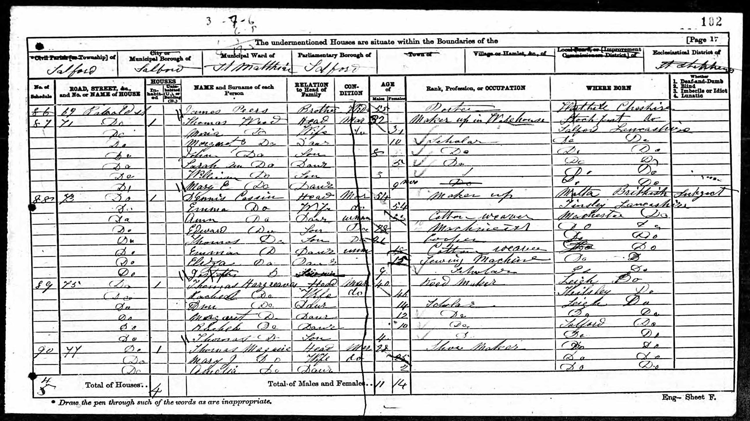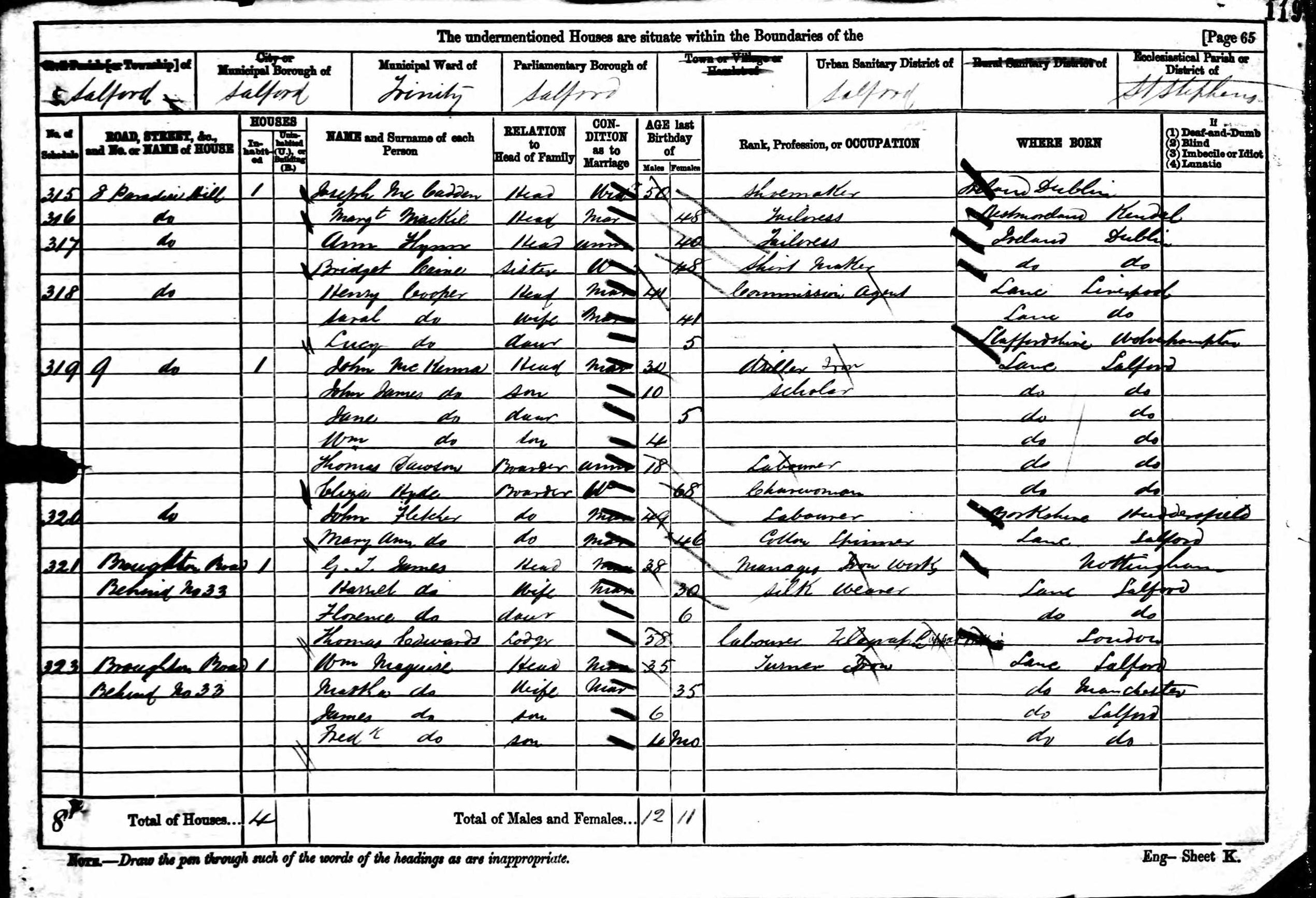 Henry Hunt Fergus | Esther Ann Hopwood | 1840 | 1907 | Tailor | x | 1840 | x | 1860 | x | 1851 | 1861 | 1871 | 1881 | 1891 | 1901 | |||