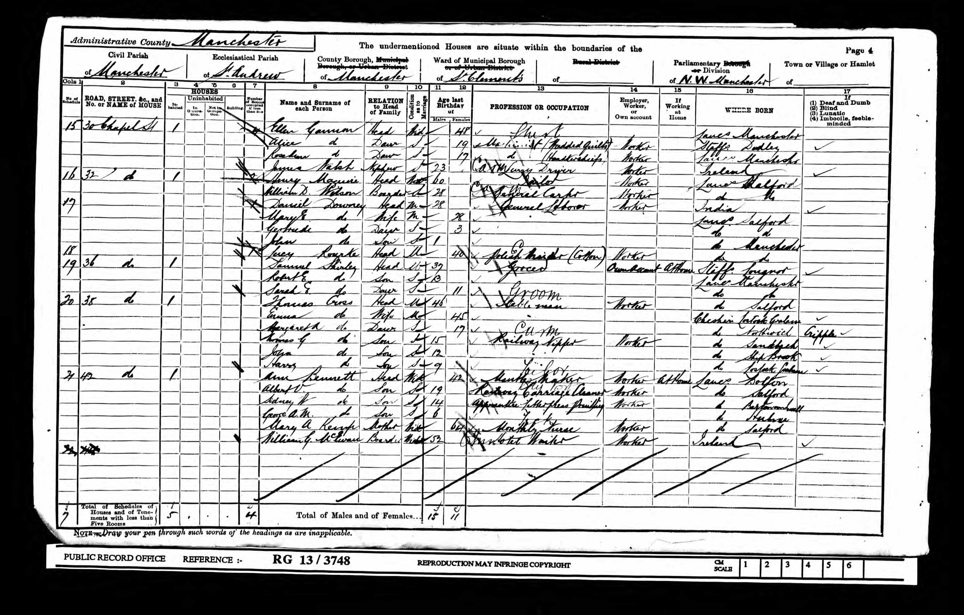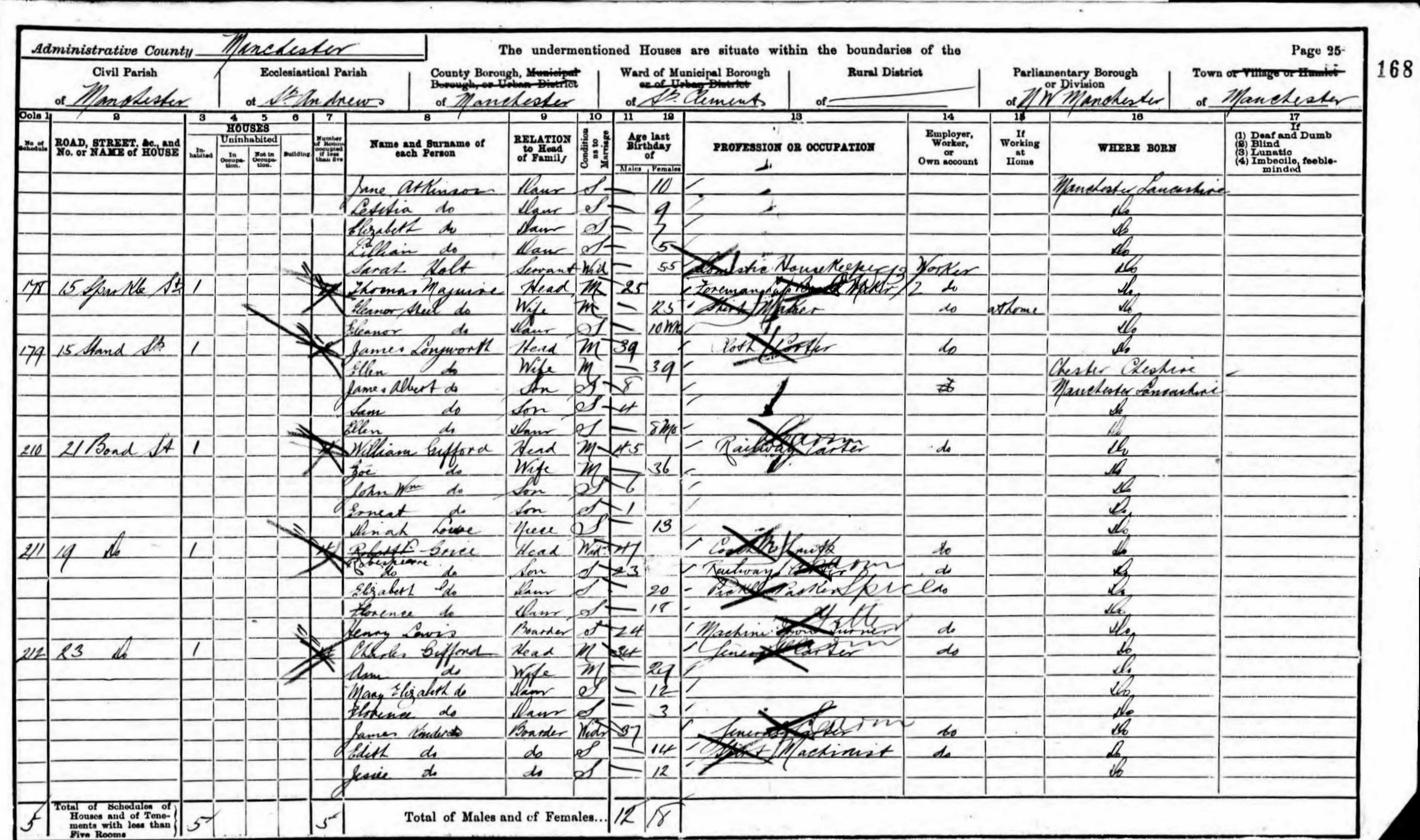 Matilda | John Bishop | 1871 | x | Garment Worker. Waterproofs | x | x | x | 1894 | x | x | x | 1910 | x | x | ||||