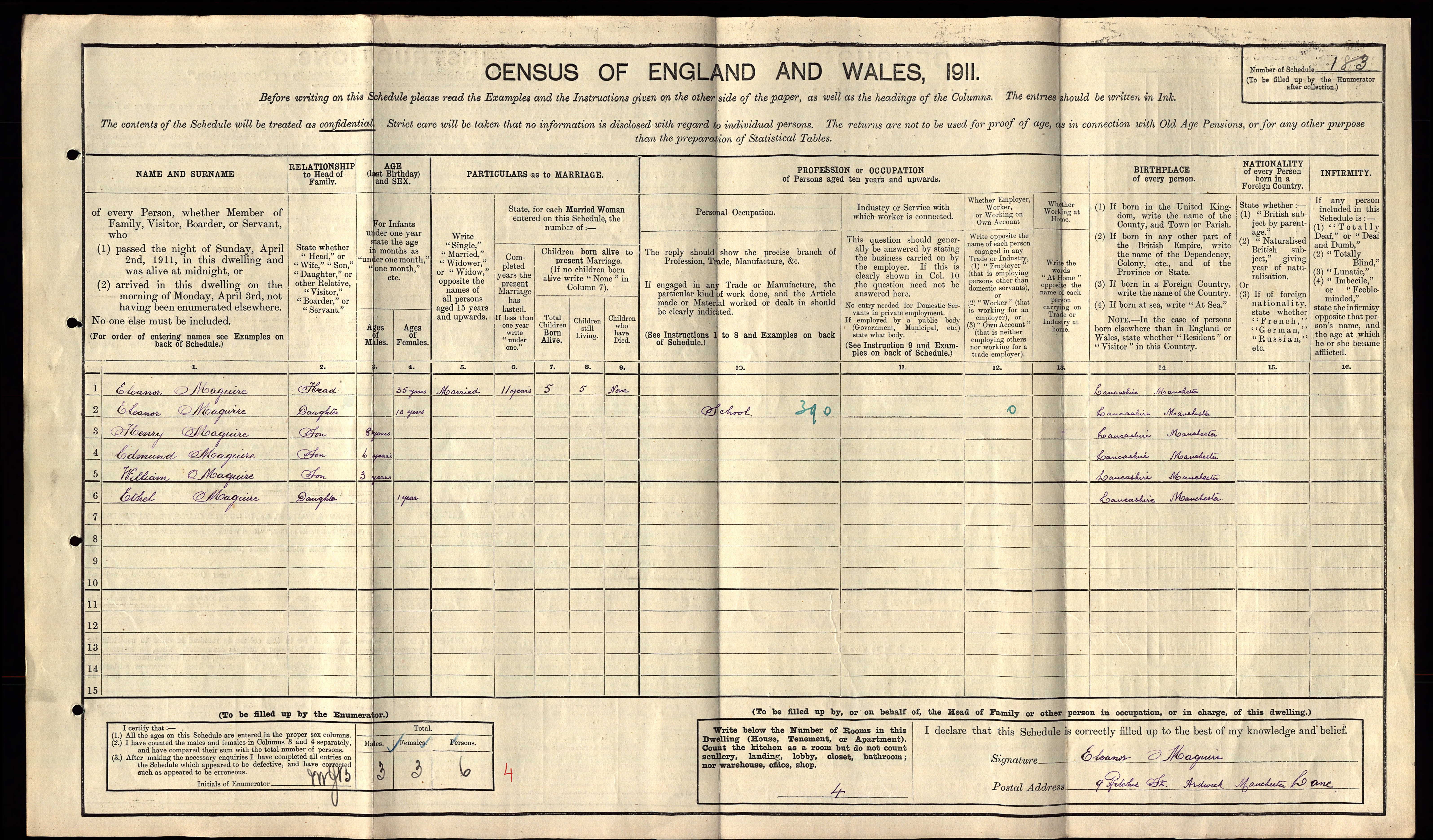 Daniel | Mary Ellen Maguire | 1872 | 1920 | Labourer | x | 1872 | 1920 | 1893 | x | x | x | x | x | 1891 | 1901 | 1911 | ||
