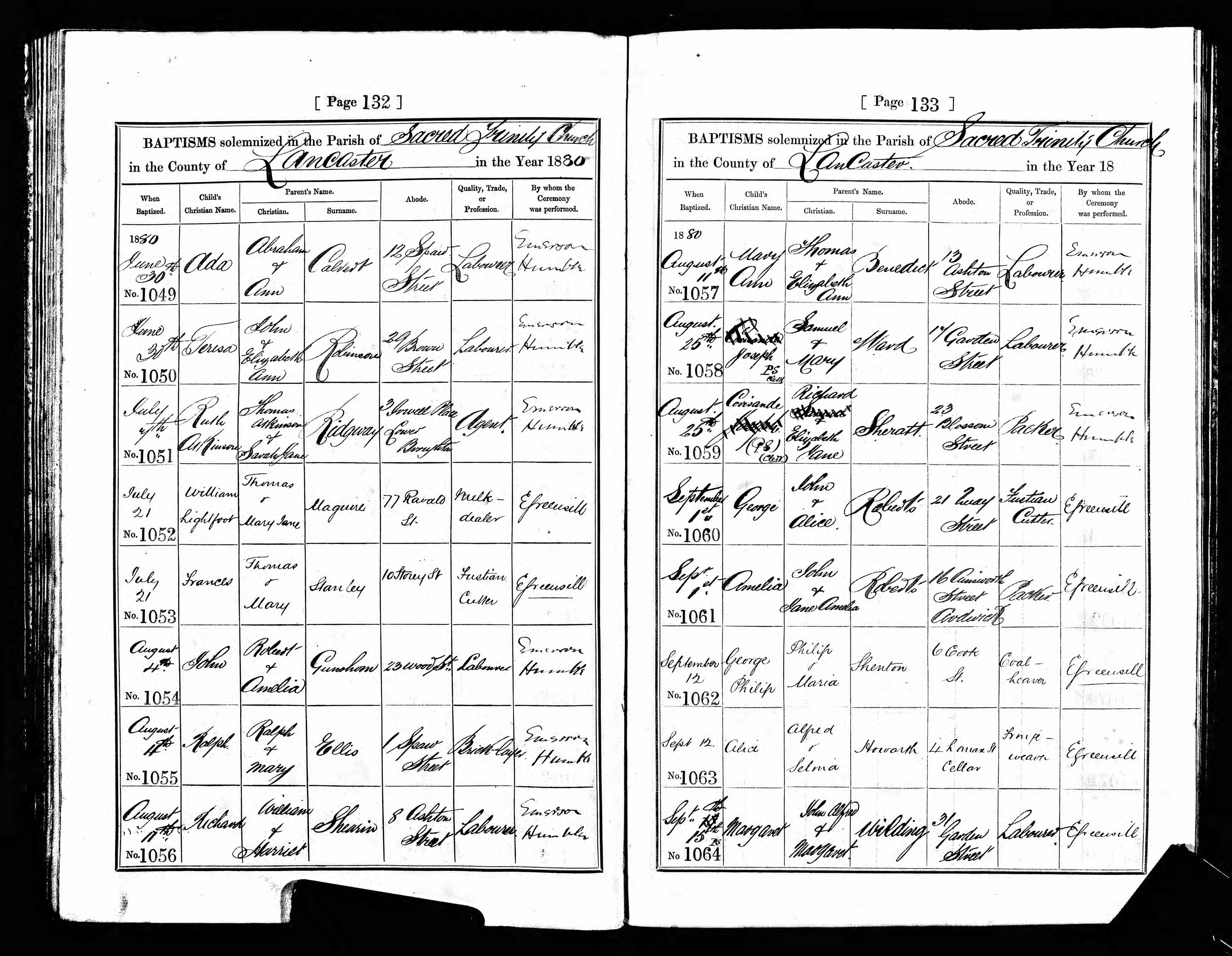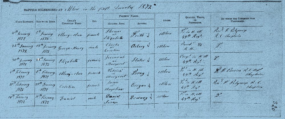 | MAGUIRE | William | Martha Thompson | 1846 | x | Mechanic | x | x | x | x | 1851 | 1861 | x | x | x | x | x | x | ||