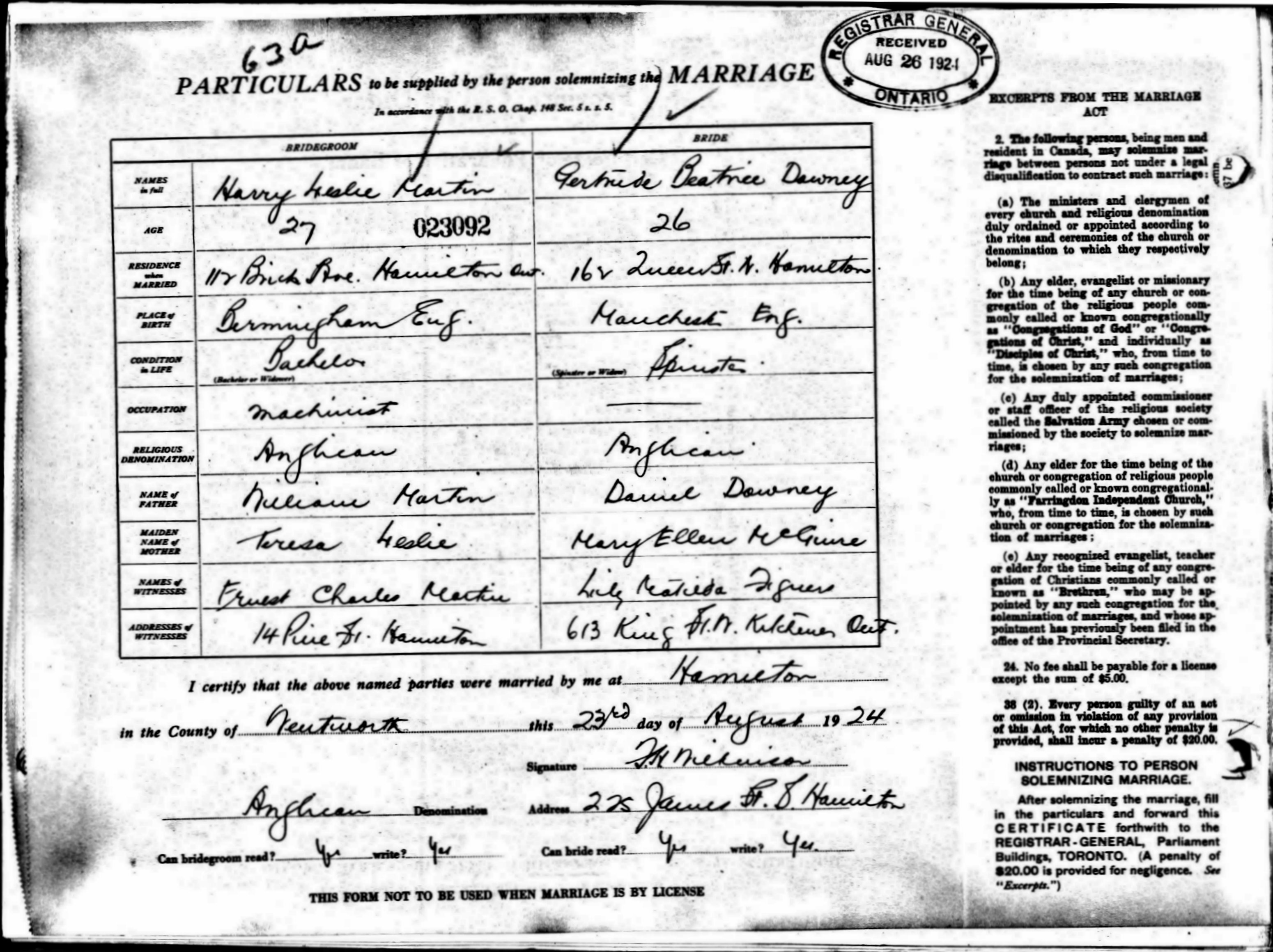 | DOWNEY | Gertrude | Harry Leslie Martin | 1898 | 1972 | x | x | x | x | 1924 | 1901 | 1911 | x | |||||||