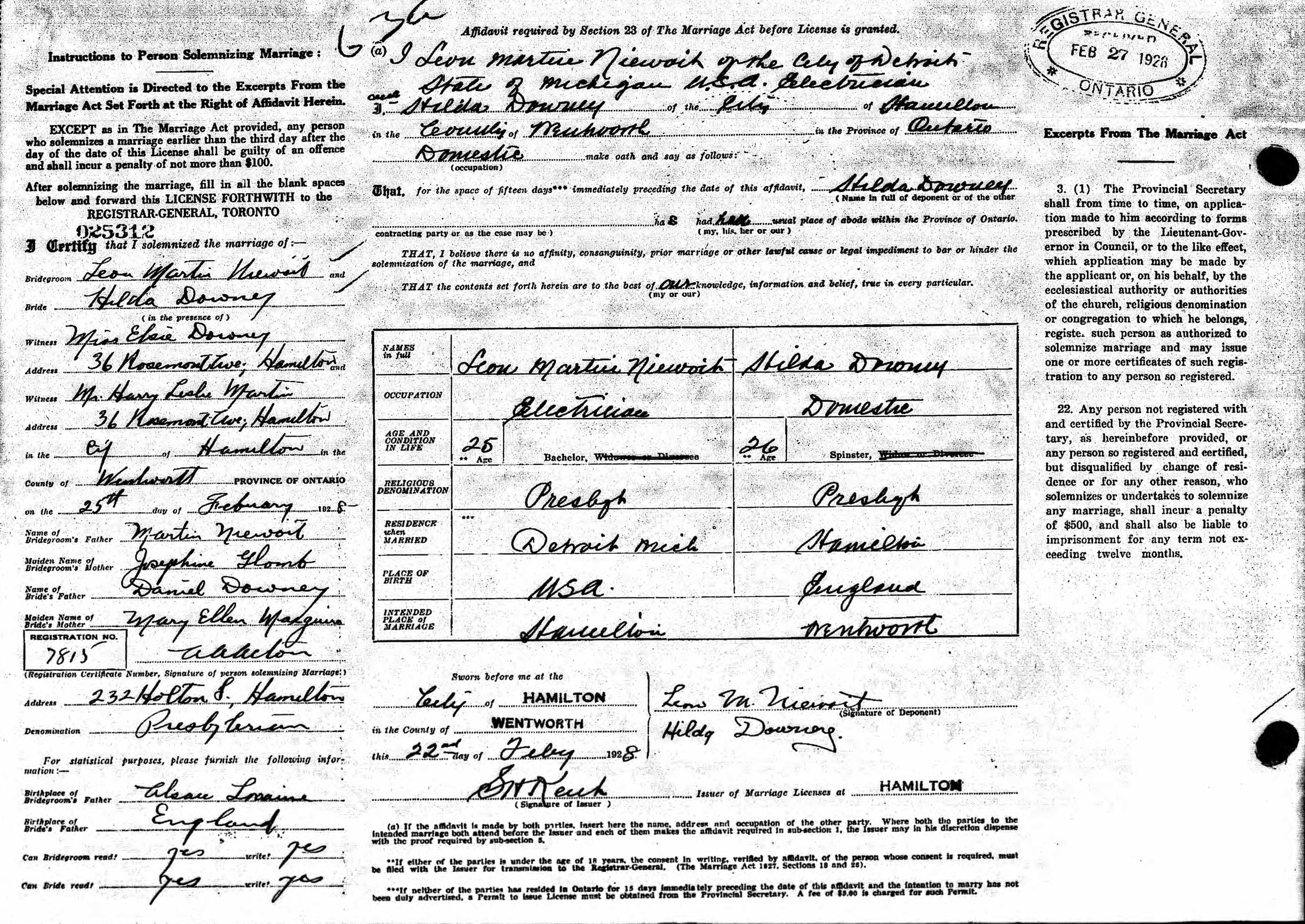 Joseph William | Eleanor Maguire | 1898 | 1943 | Salesman. Industrial Belting | x | x | 1943 | x | x | x | x | |||||||
