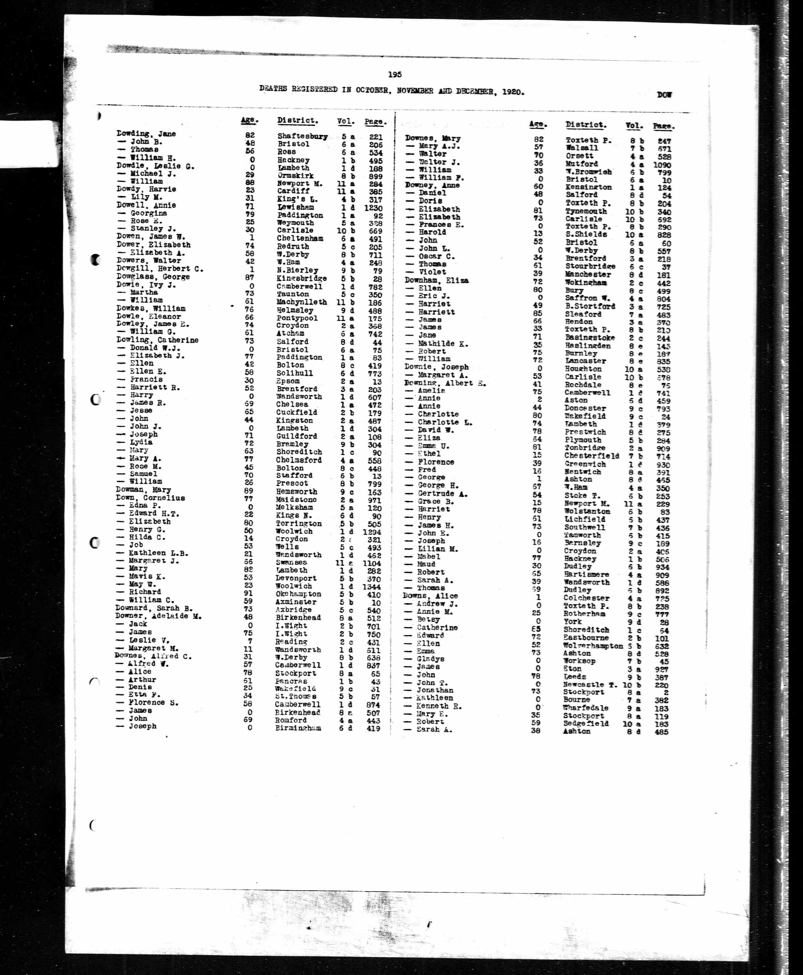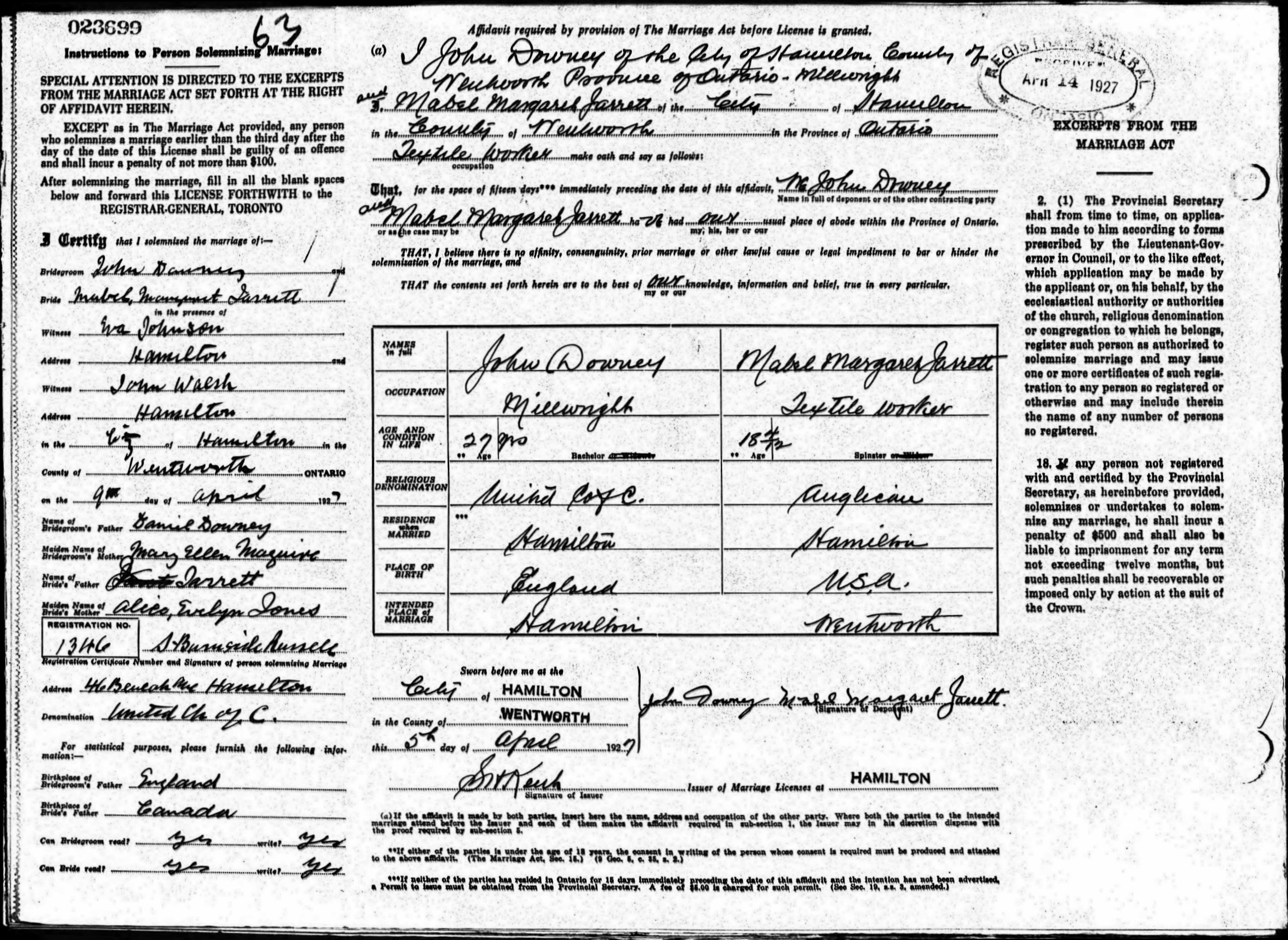 | DOWNEY | John | Mabel Margeret Jarrett | 1899 | 1961 | x | x | x | x | 1927 | 1901 | 1911 | x | |||||||