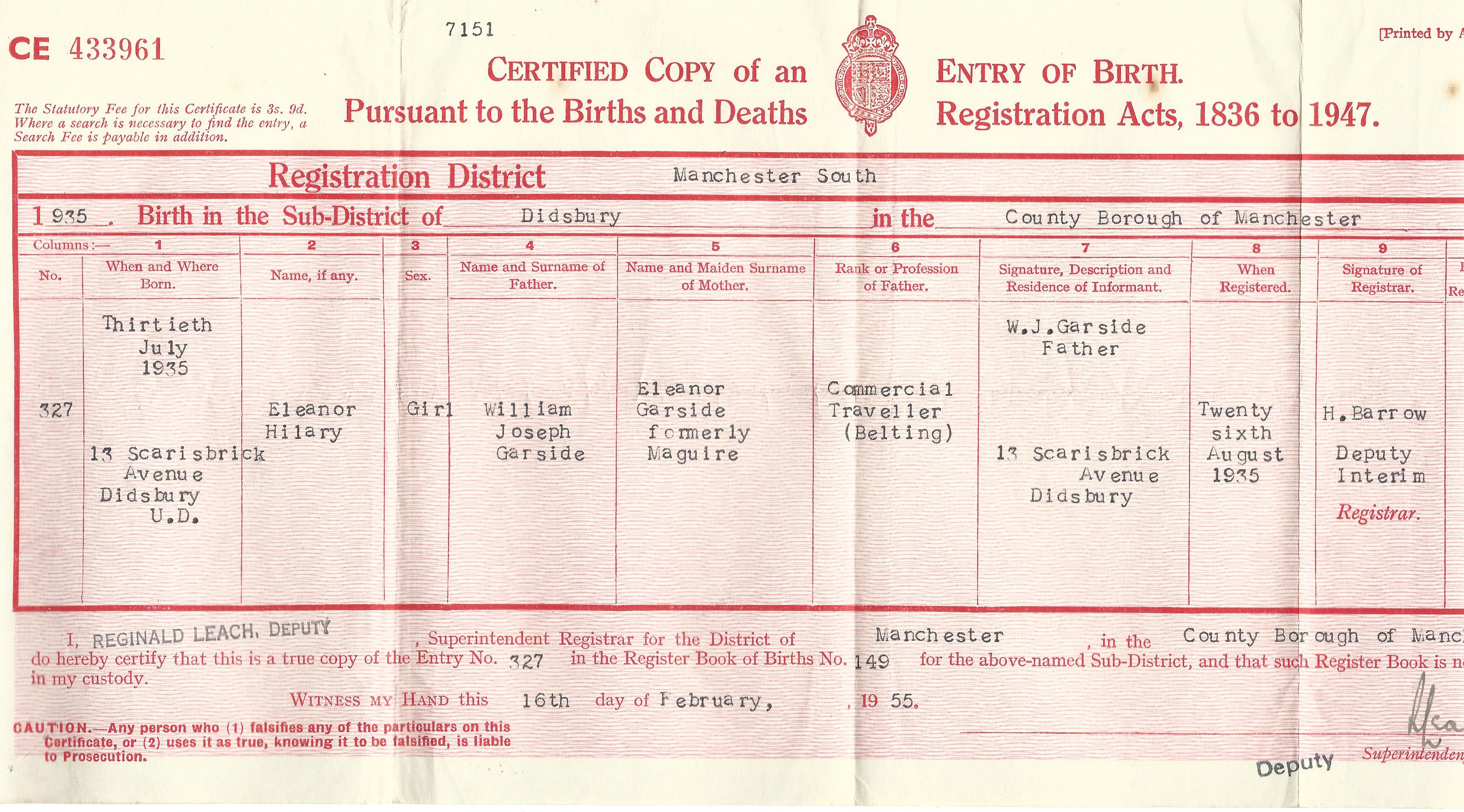 | GARSIDE | Eleanor Hilary | 1935 | 1996 | x | x | x | x | x | |||||||||||