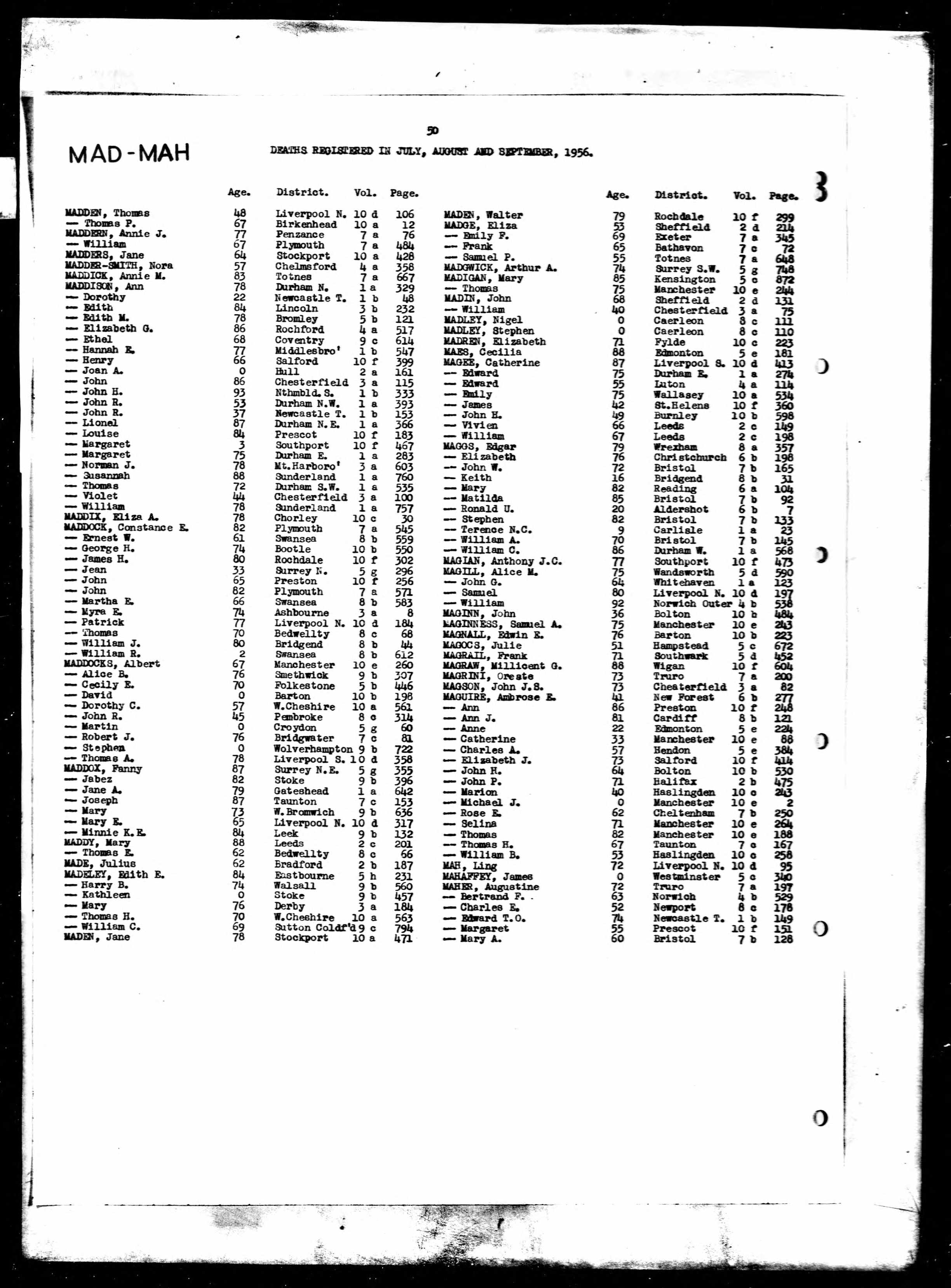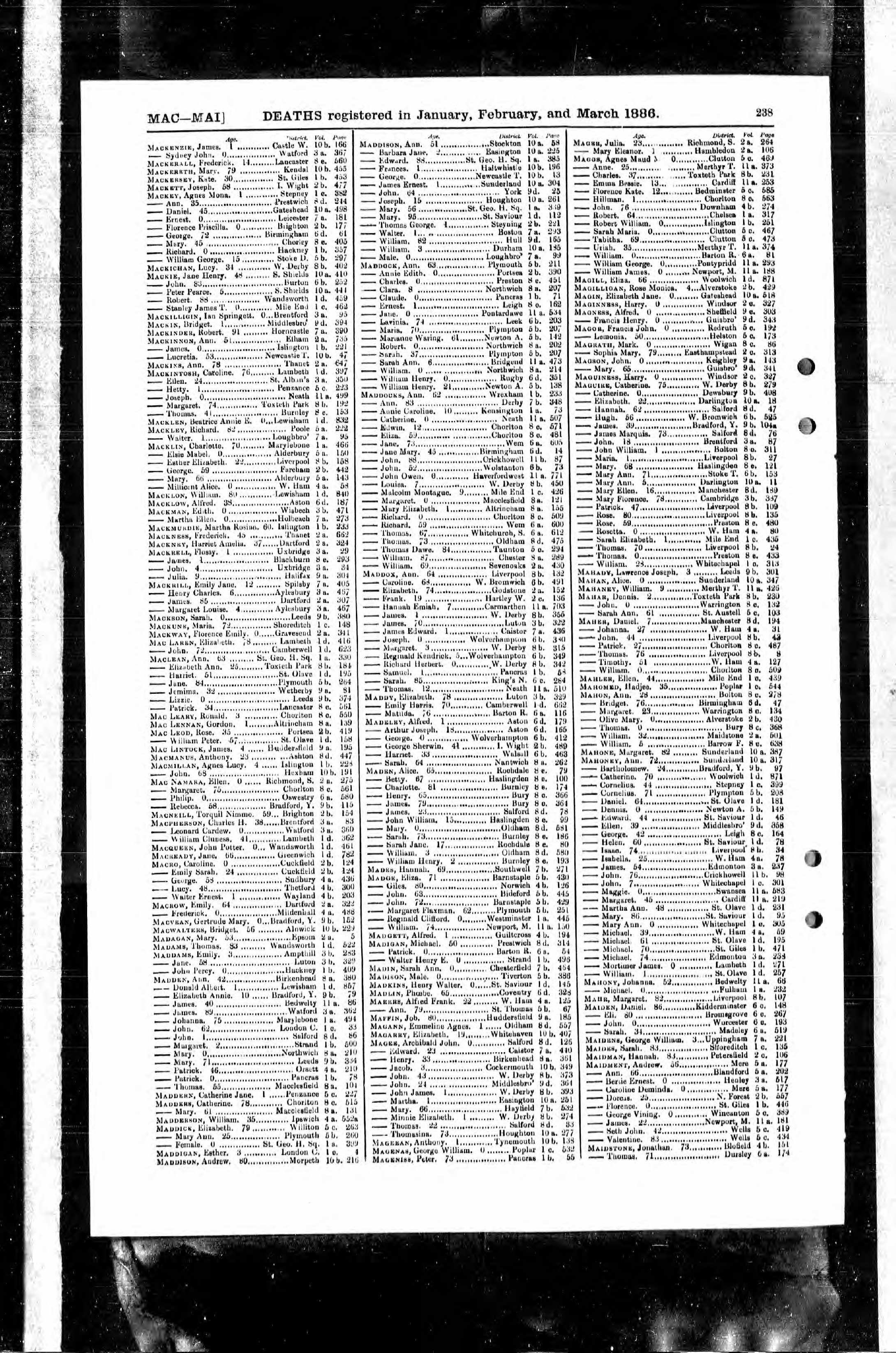| MAGUIRE | Alice | 1826 | x | x | x | x | x | x | x | x | x | x | 1881 | x | x | x | x | ||