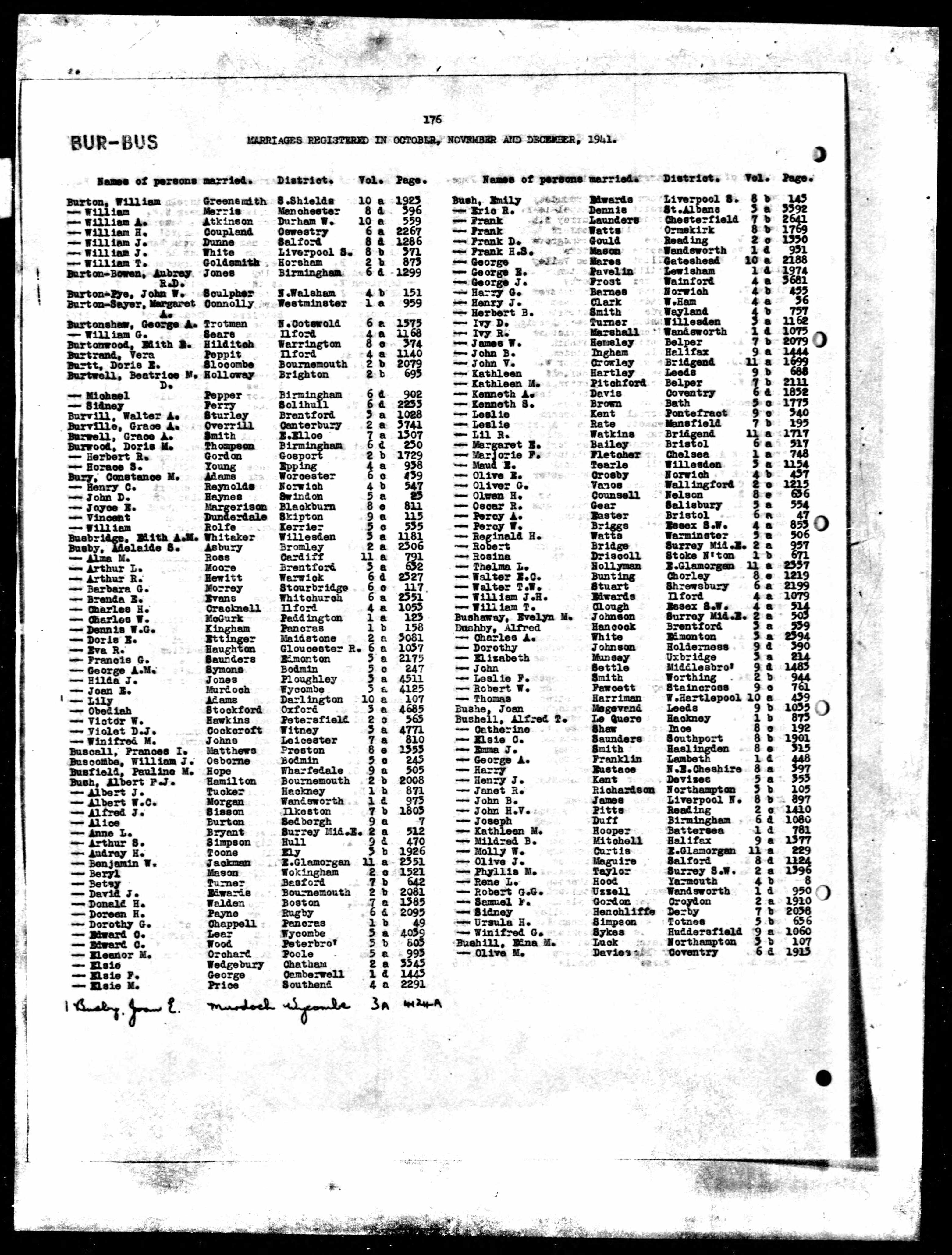 | BUSHELL | Olive | Thomas Lightfoot Maguire | 1916 | 1983 | x | x | x | x | 1941 | ||||||||||
