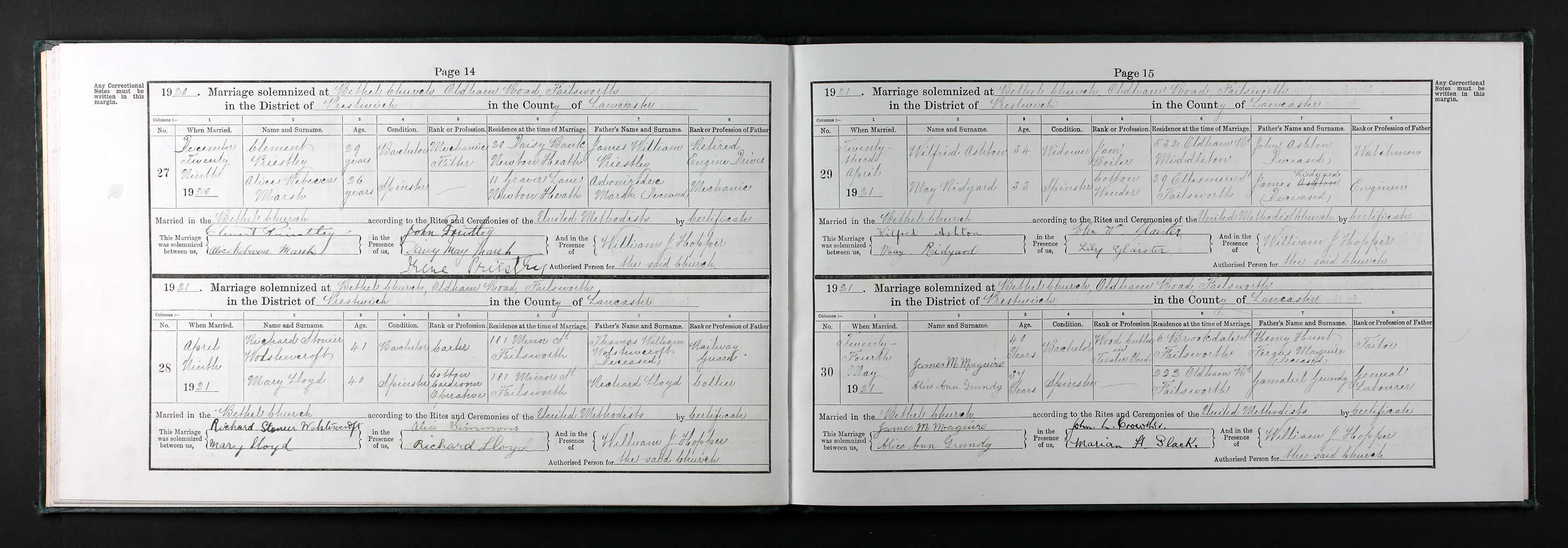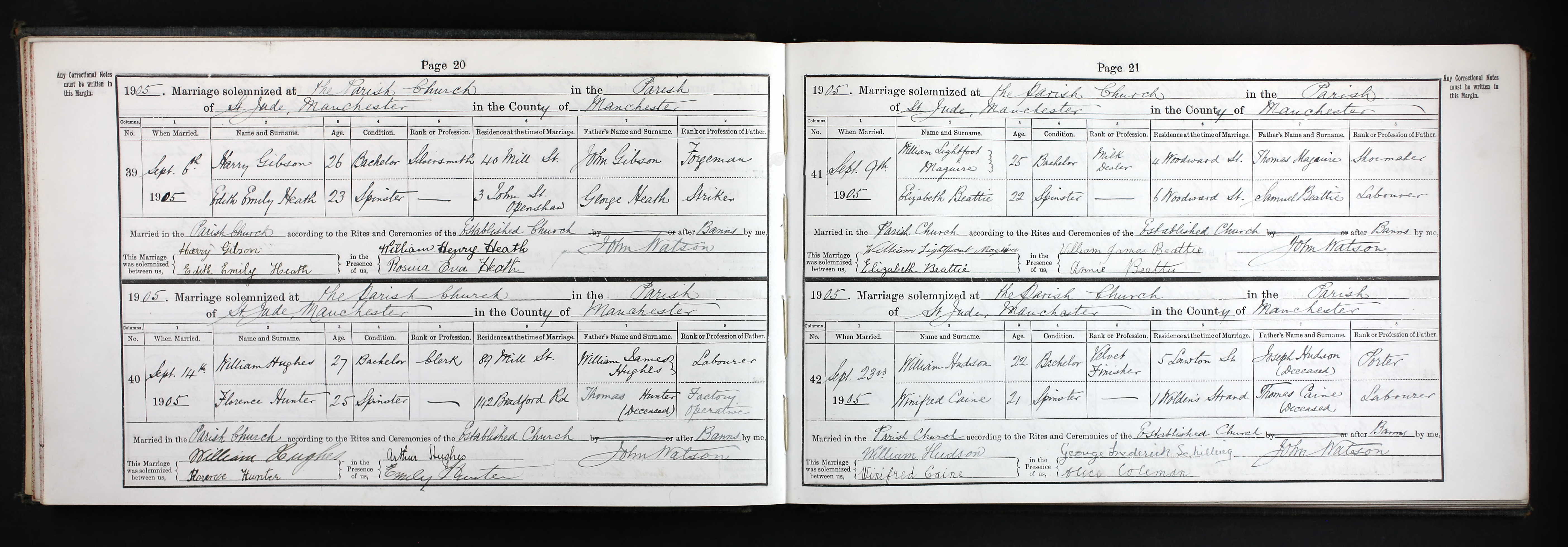 | MAGUIRE | William | Edith Tasker | 1907 | x | x | x | x | x | x | x | x | ||||||||